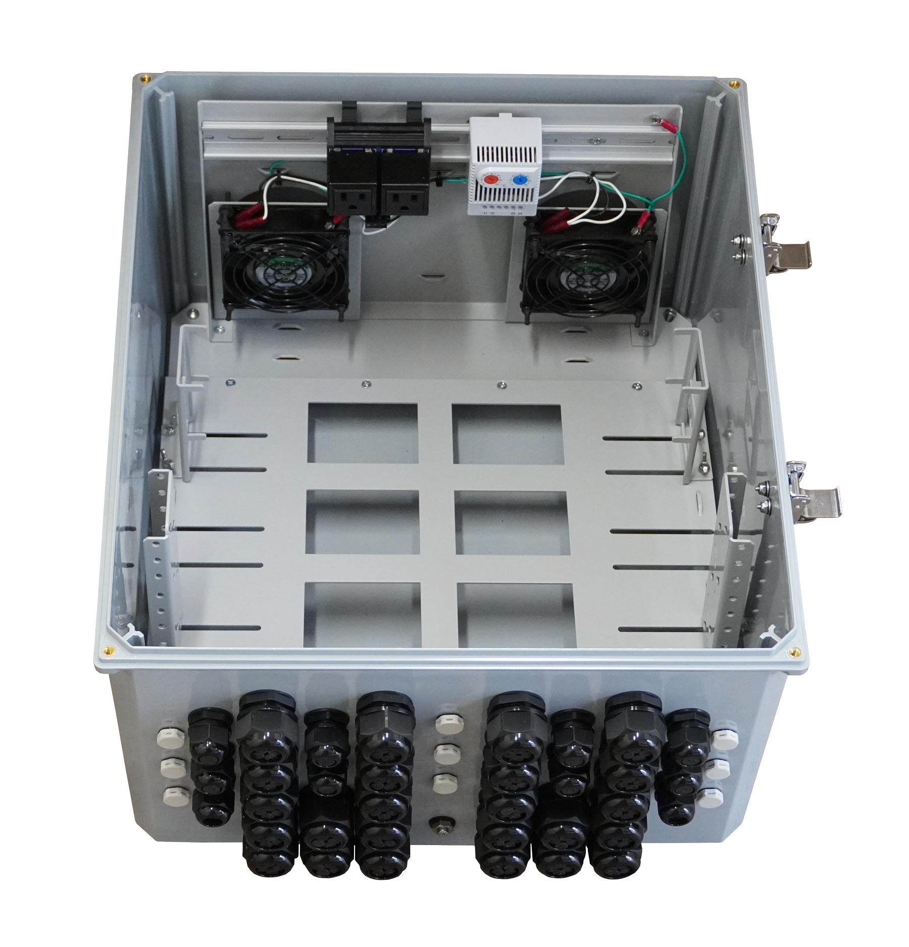 The LinkPowerTM LPS9000RMG is designed with Inscape Data's All-in-One Box outdoor enclosure patent. The LPS9000RMG Outdoor Rack Mount PoE Switch System is integrated with a duplex AC Power Receptacle power supply, offering support for LinkPower Passive PoE Switch Series. The LPS9000RMG is ideal for Smart City Wifi, IP Video Security, and high bandwidth video transmission.
